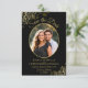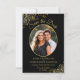 De här vackra korten är ett underbart sätt att låta dina vänner och familj veta att spara datumet för ditt kommande bröllop. De har en svart och guld-design med ditt foto i en ovalformad ram omgiven av golden faux foil curls & swirls, och finare-skript med namn, datum och plats för bröllop. På baksidan finns en söt bild med plats för en anteckning som kan innehålla en webbplats där dina gäster kan gå och läsa mer.