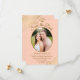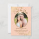 De här vackra korten är ett underbart sätt att låta dina vänner och familj veta att spara datumet för ditt kommande bröllop. De har en ljus orange- eller persiko- och guld-design med ditt foto i en ovalformad ram omgiven av golden faux-folie- och virvlar. Det finns finare-skript med plats för namn, datum och plats för bröllop. På baksidan finns en söt bild med plats för en anteckning som kan innehålla en webbplats där dina gäster kan gå och läsa mer.