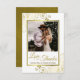 De vackra bröllop-tackkorten som du använder har ett foto i en gyllene ram, omgiven av ornate golden faux foil curls and swirls. Rubriken lyder: Kärlek och Tack, med namnen nedan. Det här tackkortet är enkelt, snyggt och elegant, och det är det perfekt sättet att tala om för dina vänner och din familj hur mycket du uppskattar deras kärlek och stöd.