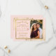 De här vackra datumkorten kommer att ge dina vänner och din familj information om ditt kommande bröllop. De har en rosa- och guld-design i elegant med ditt foto i en gyllene faux-foil ram och delikata kurvor och snurrar i hörnen. Det finns utrymme för en kalender för anpassadet i din bröllop-månad med ett hjärta runt din speciella dag. Finare, snyggt, posh och glam, de här korten är ett underbart sätt att påbörja resan i bröllop med klass och stil.