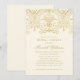 En lyxig bröllops bröllopsfest inbjudan med en guld glitter damask motiv kröner en varm elfenbensvit bakgrund. Den mjuka vita tonen lägger till värme till den utsmyckade rullstensdesignen medan kalligrafi skrift och guld serif typografi upprätthåller en polerad, formell elegans. Fungerar också vackert för en bröllops lunch. Varje detalj är helt anpassningsbar.