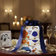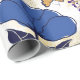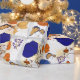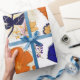 Gör varje gåva oförglömlig med detta eleganta botaniska ins wrappingspapper som har moderna, kraftfulla blommotiv i rik blå och levande orange toner mot en lyxig, guldstrukturerad bakgrund.