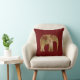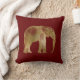 Den här kudden visar en fantastisk Guld Elephant på en rik Burgundy-bakgrund.