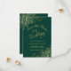 De här vackra datumkorten kommer att ge dina vänner och din familj information om ditt kommande bröllop. De har en grönt och guld-design för eleganten som framträder och med ornerade kyler i hörnen och finare-skriptkalligrafi som läser Spara datum med namn av paret, datum och plats för bröllop. På baksidan finns en söt bild med plats för en anteckning som kan innehålla en webbplats där dina gäster kan gå och läsa mer.