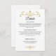 Denna Elegant, Guld Filigree on White, är en traditionell perfekt för par som vill erkänna det gamla samtidigt som man tar över det nya. Dessa inbjudningar har filtret mönster både överst och grund, ramar in texten och betonar kortets centrum. Det här platta kortet känns fortfarande traditionellt, med det fet serif-teckensnittet och filigree mönster mellan datum och klockslag i texten. Namnen för bruden och trippen finns i ett kalligrafiskt teckensnitt för eleganten och tar upp deras utrymme överst, nedanför det filigree mönster. Filträdet är tillgängligt i olika färg, så de kommer att arbeta för vilket tema som helst, och detta - tillsammans med den något segmenterade texten och enkelheten i resten av inbjudan, för även tillbaka kortet till den moderna tidsåldern. Filigree-designerna överst och grund gör att även kortet får en rik att röra vid och gör denna inbjudan lämplig för en traditionell ceremoni. Klicka på knappen "Anpassa" för att börja anpassa korten så att de passar din vision. Själva texten, rad för rad, kan också vara unik för dig, och detta är ett enkelt steg när du anpassar din beställning.