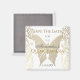 Enkel, stilren, elegant guld folie fjäril i kombination med en fantastisk guld blommig bakgrund. Unika, bedårande Quinceanera Spara datum magnet.