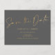 Elegant guld foil grått bröllop spara datum meddelande vykort