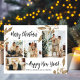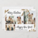 Elegant, Modern Guld och Vitt botaniskt Löv 4 Photo Collage God jul Helgdag Card. Den här festiva, imalistiska, vimmistiska 4 (4) fotokortsmallen innehåller en söt fotokollage, faux guld foil botanical löv, winterbär och säger God jul och Gott nytt år! Texten "God jul och Gott nytt år" hälsning är skriven med ett vackert, svart, typsnitt av typografi på vit bakgrund. På baksidan lämnar ett foto med guld ram och faux guld glitter arrangemangt på vitt. Söten är viktig för din familj och dina vänner under denna jul och Julhelg.