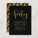 Denna formella, eleganta, trendiga, moderna fyrtioårsfirande inbjudan är lämplig för män eller kvinnor. Den har en stilren "Fyrtio"-stil och enkel typografi på svart bakgrund. På baksidan finns ett falskt guld folie art deco-mönster.