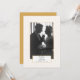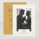 Framhävt det firade paret med ett originalbröllopsfoto eller ett foto från idag på denna vackra guld- och vit fotokortinbjudan. En elegant text med subtil cirkelmönstrad bakgrund visar ett foto av det speciella paret och blir en vacker presentation för familj och gäster. Varje textrad är lätt att anpassa för att passa dina behov och festplaner perfekt.