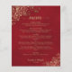 Dessa vackra bröllop-menyer är enkla, eleganter och snyggtar, samtidigt som de fortfarande är budgetvänliga och prisvärda. De har en klassig och glamorös design med gyllene faux-folier och snurrar, och manusgrafi på en marmorerad krimson röd bakgrund.