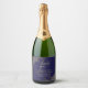 Dessa vackra mousserande vin-flaska-etiketter har en utformning som är enkel men ändå elegant med faux-folie från guld i hörnen och lacy script calligraphy på en marin blå bakgrund. Perfekt för en bröllop-säck för medlemmar av brudens sida, speciella gäster eller för din mottagnings- eller repetitionsmiddag. Texten lyder: Tack för att ni firar med oss, och det finns utrymme för parets namn och datumet bröllop.