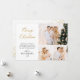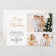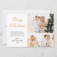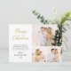 Elegant Modern Calligraphy Script 3 Photo Collage julkort. Detta fräcka, enkla, minimalistiska multifotojulkort har söt tre (3) rasterfotokollage, guld glitter-konetti, en "God jul" hälsning-text som är skriven i en snygg, kursiv stil med svan-typsnitt i guld och vitt. På motsatt sida hörn av glitter konfetti och förformat meddelande. Hälsningskort för söt till din familj och dina vänner på Winter-Julhelgen.