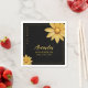 Den här utformningen är en fängslande visning av modern elegans. Blommorna guld glitter mot den eleganta svarta bakgrunden skapar en slående kontrast, medan det känsliga skriptet tillför en aning sofistikering.