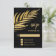 Glamourös falsk guld glitter palmträd blad på svart med din högtid jul fest RSVP detaljer i chic bokstavsstil. ÄNDRA texten, teckensnitten, typsnittsfärgerna, till och med bakgrundsfärgen. Designs är platta tryckta illustrationer/grafik - INTE ÄKTAT GULD GLITTER. Välj Matt för tyngsta papper. MATCHANDE festinbjudningar, spara datum-kort, presentpåsar och fler artiklar i vår butik --> http://bit.ly/2JQANWZ <--