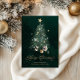 Skicka varma höst- och vinterhälsningar med det här eleganta julkortet med ett vackert illustrerat städsegrönt träd prytt med gyllene stjärnor och omgivet av presenter. Det glänsande gyllene ”God Jul”-manuset tillför en touch av lyx och festlig charm — perfekt för vänner, familj eller kunder.