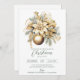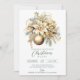 Elegant, klassiskt, lyxfritt guld och grönt (mynta, lätt teal) juldesign med guld julbalk och guld blommigt inslag.