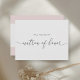 Anpassningsbar-designat "Kommer du att bli min hedersatron" frieri brudens sida kort med elegant-handcalligrafi på framsidan, rosa färg block med guld hjärtdesign på baksidan.