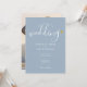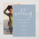 Elegant Guld Hjärt Dusty Blå Script Foto Bröllop Inbjudningar