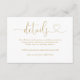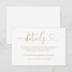 Detta eleganta bröllopsdetaljkort med guld hjärtmanus kan anpassas med din information i chic typografi. Designad av Thisisnotme©