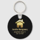 En nyckelring med en enkel bild av ett guld-övertoningshus på en svart bakgrund. Elegantens minimalistiska utformning.