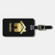 En bagagetagg med en enkel bild av ett övertoningshus i guld på en svart bakgrund. Elegantens minimalistiska utformning.