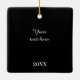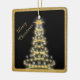 Dekorera Julgran med den här eleganten. Detta prydnadsföremål illustrerar ett guld-Julgran med helgdag och en guld-stjärna. Bakgrunden är en häpnadsväckande svart kontrast mot guld glitter vid gräns. Anpassa baksidan med din Julhälsningar. Köp den här prydnaden åt dig själv eller ge som en gåva till den speciella personen.