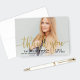 Tillsätt en touch av glans till din tacksamhet med detta underbara examens tacksamt kort. Flödande falskt guld folie kalligrafi överlagrar din helbleka seniorporträtt med ditt namn, skola och klassår i ren svart typ nedan. Anpassa foto och text för ett glamouröst kort som fångar utseendet av guld utan priset på folie.
