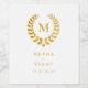 Elegant Guld Laurel utandningsMonogram Vit Vinflaska Etikett