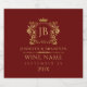 Elegant, enkel, engrammad vin-etikettdesign. Guld tones lagerkrans med ett monogram för krona och anpassningsbar: Mörk-röd utbytbar bakgrund och anpassade textmall.