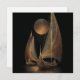 En sofistikerad och elegant minimalistisk illustration med två Viking-långskepp med stora, mönstrade seglar, som helt och hållet återges i guld linjer och det geometriska mönster. Fraktaserna verkar segla på lugn vatten med stiliserade reflektioner som ställs mot mörk, kol-grått-bakgrund. Ovanför dem är också ett stort, glödande fullt måne eller sol detaljerat med ett komplext gyllene mönster.