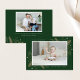 Elegant Guld Lämnar 2 fotopriskort. Guld Stars Grönt julkort Glad helg