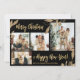 Elegant, Modern Black and Guld Botanical Löv 4 Photo Collage God jul Helgdag Card. Den här festiva, imalistiska, vimmistiska 4 (4) fotokortsmallen innehåller en söt fotokollage, faux guld foil botanical löv, winterbär och säger God jul och Gott nytt år! Texten "God jul och Gott nytt år" hälsning är skriven med ett vackert, handskrivet typsnitt på svart bakgrund. På motsatt sida lämnar ett foto av vågrät med guld ram och faux guld glitter arrangemangt på svart. Söten är viktig för din familj och dina vänner under denna jul och Julhelg.