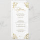 Lägg till en sofistikerad beröring till din mottagning med den här lyxmenyn bröllop som ger elegant guld blomning. Designat för högkvalitativa firande är det fullt anpassade med kurser, namn och datum. En perfekt kompletterar de formella ställe-inställningarna.