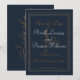 Elegant guld-, marinblå och vit Spara datum-kort Datumet