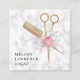 Moderna affärskort för hårstilister med faux guld sax & comb, rosa och vit ros, vit marmorbakgrund och kalligrafteckensnitt för elegant.