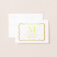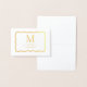 Här är ett personlig-kort för elegant som fungerar för personalkorrespondens, eller till och med som ett tack för bröllop. På framsidan finns en folie från finare guld, ram, med ditt monogram och text i den, även i guld. Monogrammet och texten avgränsas av en radförklaring. Allt placeras på en vit bakgrund och kortets insida lämnas tom för användan. Klass och tidlöshet.