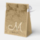 En godis för gäster i godiset i guld, som har ett monogram från Tack. Modern anpassningsbar-typografi för blommigt. Elegant, modernt, trendig, klassi, snyggt, chic, vackert, sunt metalliskt mönster. Upphovsrätt Marg Seregelyi Fotography.