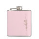 Elegant Stilren Modern Minimalist Guld Monogram Namn Skript Signatur Anpassad Personlig Rosa Flask. Med förnamn i en vacker handskriven svansfont kalligrafi (eller typografi) i guld på rosa eller babyrosa bakgrund. Dessa är lätta att anpassa. Stor stilren feminin brudtärnafestpresent, husvärmingspresent, även för Brudtärnafest, födelsedag, mors dag, bröllopsfest, sweet 16 födelsedagsfest, bröllop, för examensfest och Det är för tjejen som älskar unika stilrena saker.