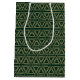 Elegant mörk gräs grönt och guld tresidig geometrisk presentpåse för mönster.