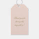 Bröllopsförmånens märkre har en elegant "Mr. & Mrs." calligraphy-manusförfattare med anpassningsbar monogram av brudgummen och brudgummens gifta namn med bröllop-datum. Två sidade antika guld-konstruktioner på rosa färg.