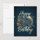 Elegant guld och blå ädelsten 50-års födelsedag vykort