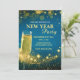 Elegant guld- och blå nyårsfest-inbjudan - Anpassad champagne- och glitterdesign