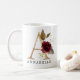 Elegant guld- och burgunderfärgad blomma Bokstav A Kaffemugg