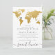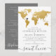 Elegant och modern guld världskarta inbjudan för ett resmål eller res-tema bröllop - flytta hjärtat till valfri plats och lägg till stadens eller landets namn längst ner för att skapa en elegant guld- och grå bröllopsinbjudan. —— Klicka på ANPASSA YTTERLIGARE för att flytta hjärtat, ändra bakgrund och textfärg, byta typsnitt eller arrangera om det hela och skapa din egen design med hjälp av vår unika falska guld folie kartkonst. —— Perfekt för tropiska, strand, ö, stad, berg och äventyrsbröllop över hela världen. Kolla vår designershop för kompletterande artiklar!
