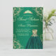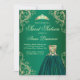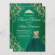 En emerald grönt och guld temade Sweet sixteen inbjudan. Den här designen har elegant- och prydnadshörn och en grönt i guld mönster. Observera att närmare uppgifter om folie i guld simuleras.