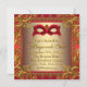Elegant röd och gul inbjudan till maskeradbal mall. Denna vackra röda inbjudan till maskeradbal är lätt att anpassa för ditt evenemang genom att helt enkelt välja "Anpassa!" -knappen för att börja lägga till dina evenemangsuppgifter, typsnitt, teckenstorlek och färg samt formulering. Observera att alla de klistermärken, kort och inbjudningsdesign du hittar på Zazzle är tryckta bilder utan faktiska ädelstenar, band, upphöjda, präglade eller tillagda delar eller bitar.