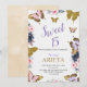 Elegant guld och rosa fjäril födelsedagsinbjudan inbjudningar