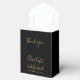 Elegant svart och guld bröllopspresentlåda med stilren signerad skrifttyp namn och speciellt datum i modern typografi. Du kan anpassa med ditt eget tackmeddelande under locket. Ett perfekt sätt att tacka dina gäster! Designad av Thisisnotme©
