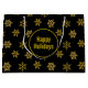 Elegant guld snöflingor på svarta Helgdagar Gift Bag. Text kan vara personlig.